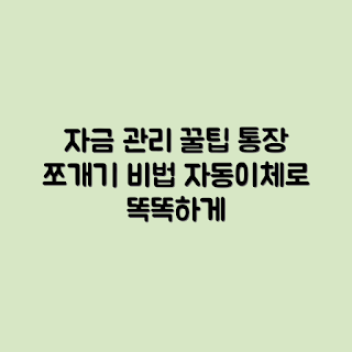 Q: 통장 쪼개기를 할 때 주의해야 할 점은 무엇인가요?A: 각 계좌의 잔액을 잘 관리하지 않으면 필요한 시기에 자금이 부족할 수 있습니다. 또한, 자동이체 설정 시 금액이 잘못 설정되거나 잊혀질 수 있으므로 주기적으로 확인하는 것이 중요합니다.